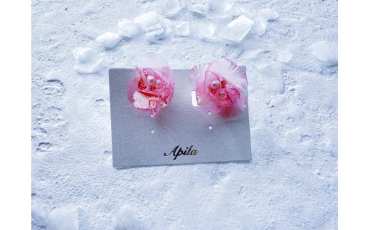 シーリーフフラワーのイヤリング(ピンク)| イヤリング アクセサリー カラー バリエーション 贈り物 シーリーフ フラワー 花 国産 鱗 ハンドメイド ガラス細工 職人 手仕事 手作り おしゃれ きれい 大人 かわいい コーデ 丁寧 こだわり 兵庫県 上郡町