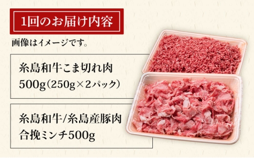 【全12回定期便】糸島和牛小間切れ500g & 糸島和牛糸島産豚合挽ミンチ 500g 合計1kg《糸島》【糸島ミートデリ工房】 [ACA239]