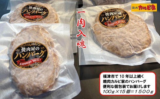 - 焼肉屋仕込みのハンバーグ 合挽き 100g×15個 焼くだけ簡単 家庭用冷凍ストック 福岡県福津市 カルビ家 [H4635]