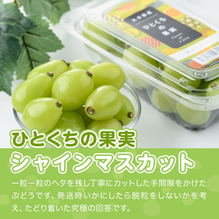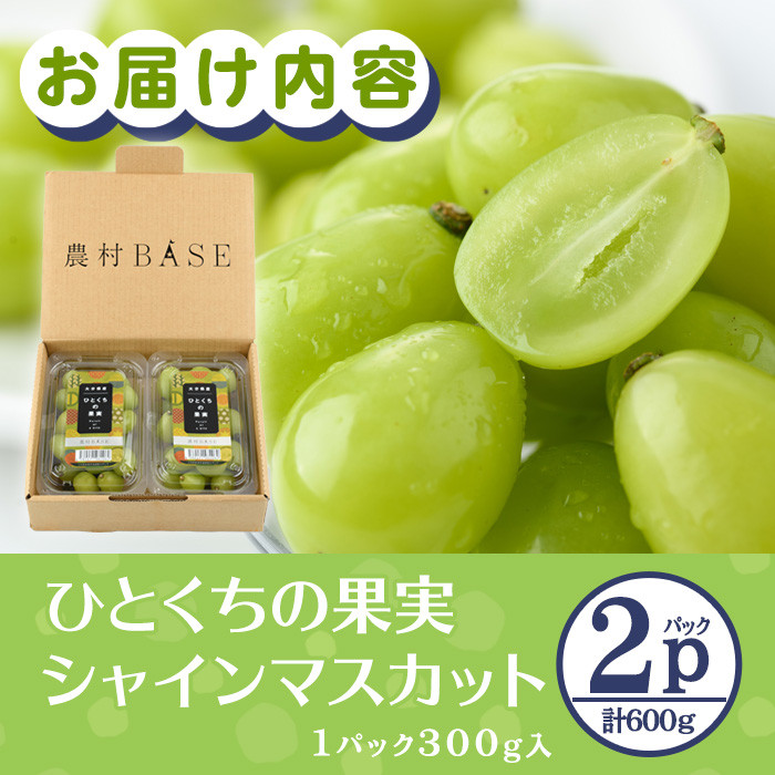 - <先行予約受付中!2026年8月上旬以降順次発送予定>ひとくちの果実 シャインマスカット(計600g・300g×2パック)国産 ぶどう 葡萄 フルーツ 果物 くだもの 果実【100702300】【宮田ファミリーぶどう園】