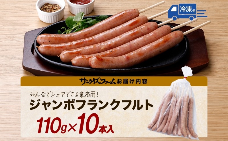 ジャンボフランクフルト 110g×10本 熨斗あり 豚肉 フランクフルト あらびき ジューシー 簡単調理 電子レンジ フライパン お祭り 夕食 おかず おつまみ BBQ バーベキュー 送料無料 サンライズファーム 千葉県 香取市 SRF015_N15