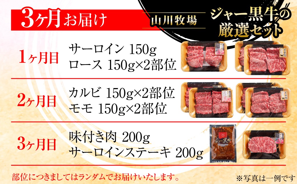 - 【定期便3か月】山川牧場ジャー黒牛の厳選セット 【 ふるさと納税 人気 おすすめ ランキング 北海道ブランド牛 牛 牛肉 和牛 ジャー黒 モモ モモ肉 ロース ロース肉 焼き肉 サーロイン ステーキ サーロインステーキ ステーキ肉 牛ステーキ カルビ 定期便 北海道 七飯町 送料無料 】 NAN016