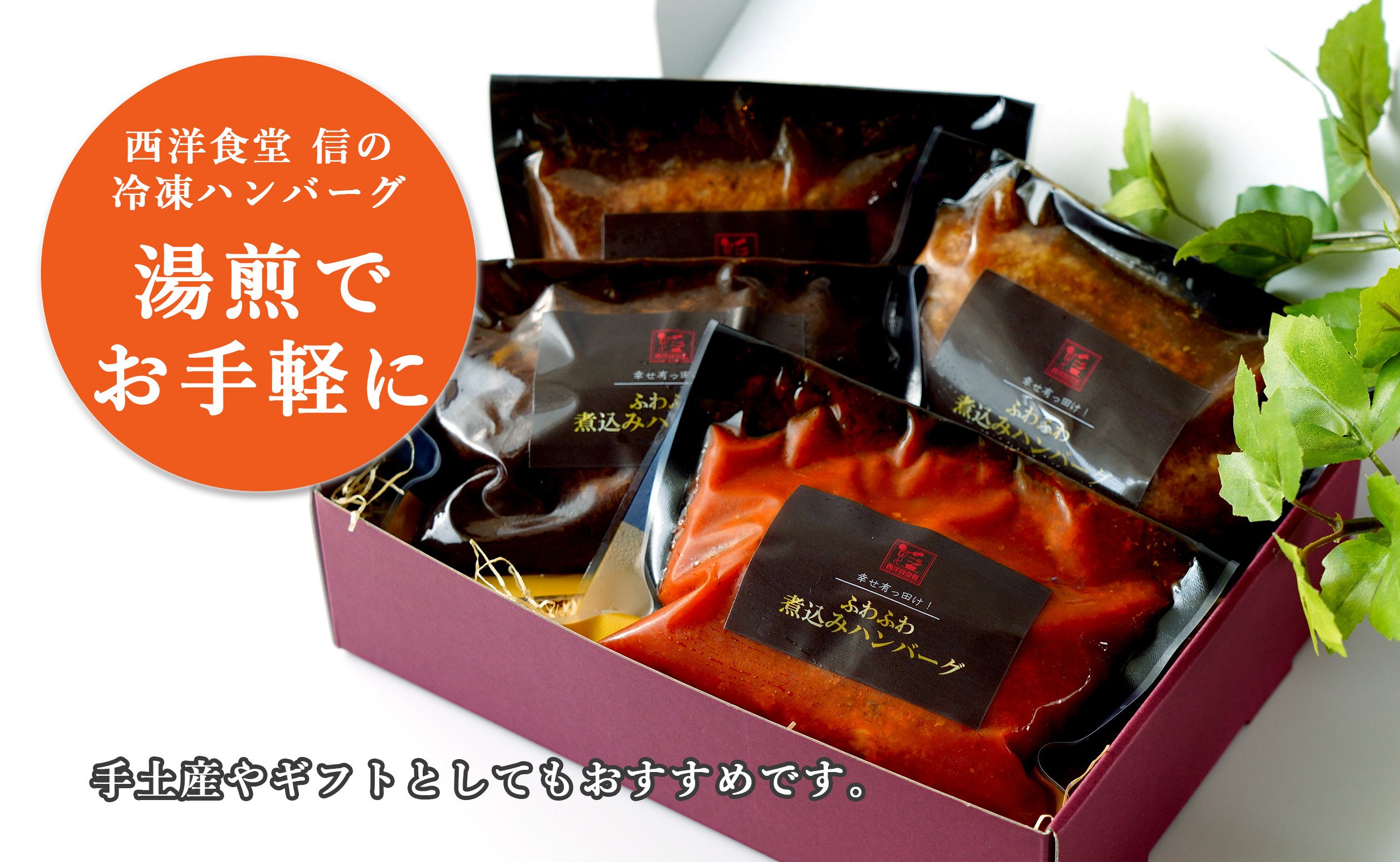幸せ有っ田け!4種のふわふわ煮込みハンバーグ 230g×4個セット【西洋食堂信】冷凍ハンバーグ ハンバーグお取り寄せ 温めるだけ ギフト 和牛ハンバーグ N16-3