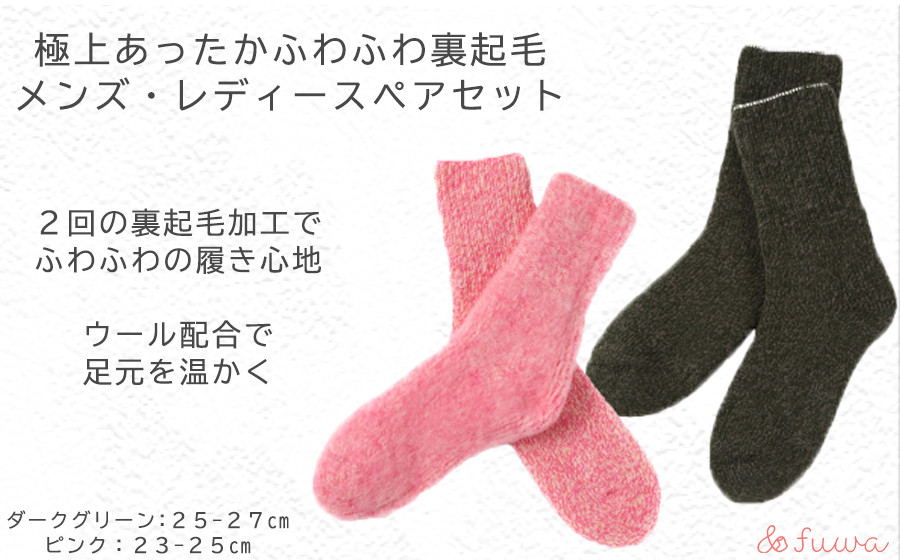 - 極上あったか ふわふわ裏起毛ソックス メンズ/レディースセット/// 冷え 温活 足元 暖かい かわいい ペア リラックス 裏起毛 ルームソックス
