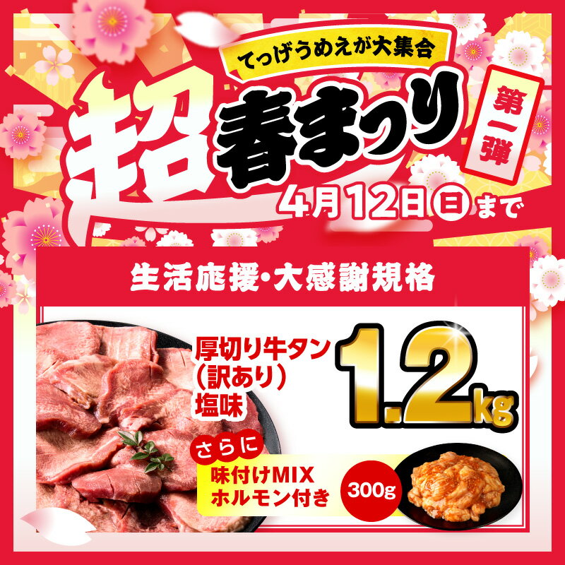 厚切り牛タン 塩味 たっぷり計1kg(500g×2) 訳あり