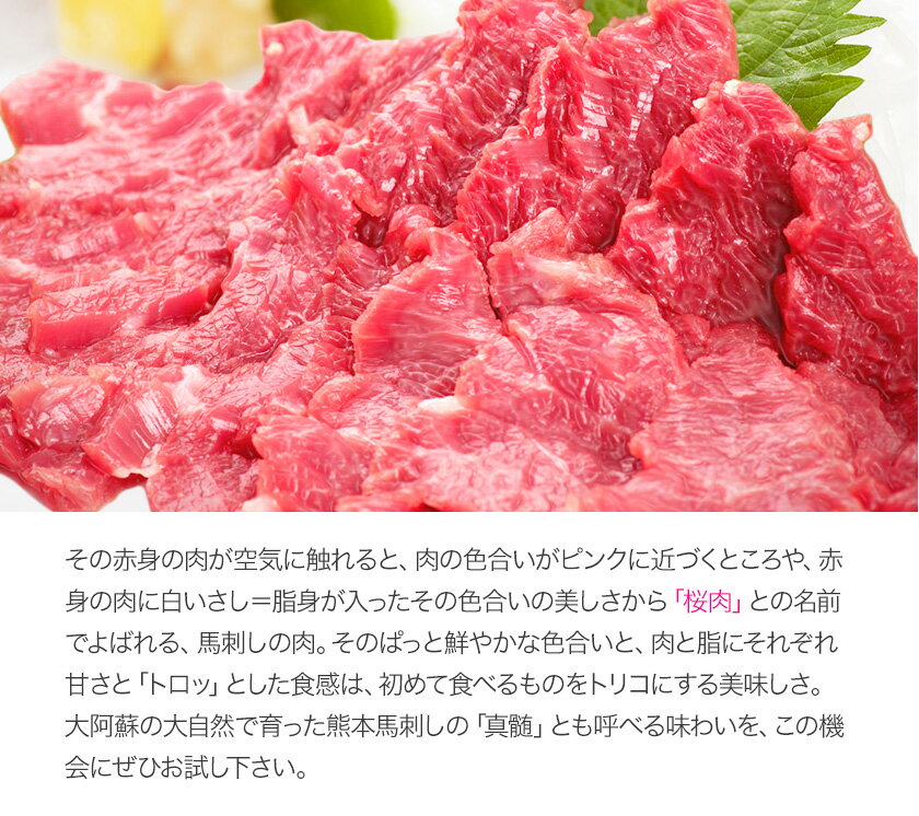 【ふるさと納税】熊本 馬刺し 上霜降り(トロ)・赤身セット 約400g/約800g/約1kg/約2kg 1パック約50g 2種類 タレ・生姜付き 22000円 〜 76000円 2万2000円 ~ 7万6000円 馬刺 ばさし 馬肉 馬 上霜降り 刺身 ブロック 食べ比べ 冷凍 熊本県 送料無料