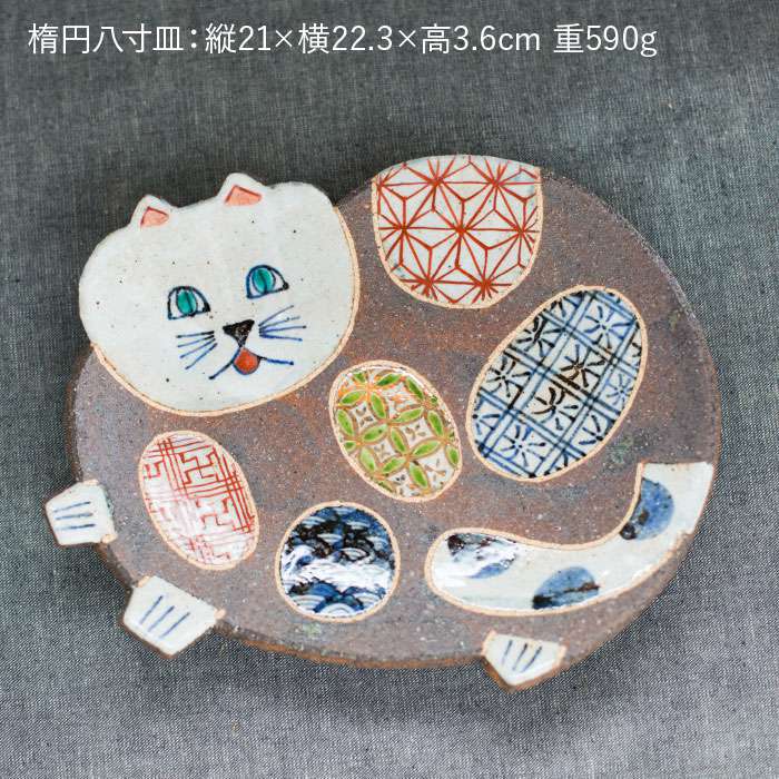 【ふるさと納税】【波佐見焼】ねこあそびシリーズ 楕円八寸皿・銘々皿 プレート セット 食器 皿 【洸彩窯】 [EE07]