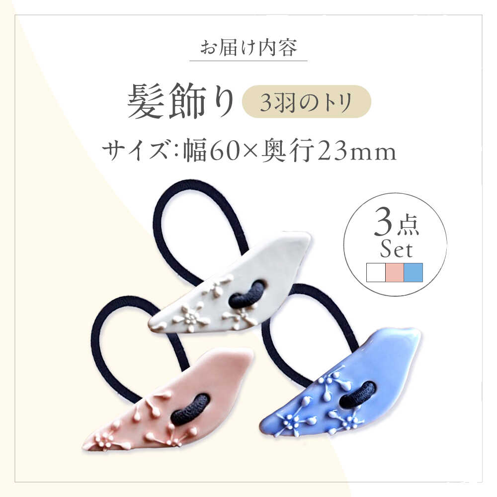 【ふるさと納税】砥部焼 髪飾り(3羽ノトリ) 3点セット / へアゴム ゴム ファッション 女性作家 鳥 青 白 桃色 ブルー ホワイト ピンク ボタン おしゃれ かわいい 陶芸 手作り アクセサリー ハンドメイド / 愛媛県砥部町/工房釉瑠璃[BJBM014]