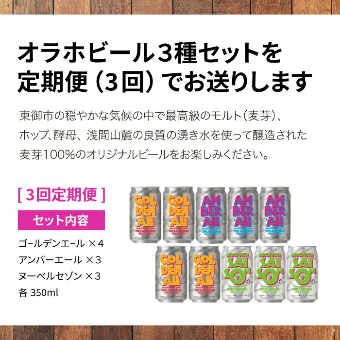 【ふるさと納税】【3回定期便】【クラフトビール】オラホビール 3種10本 飲み比べ ビールセット|ゴールデンエール、アンバーエール(アンバー)、ヌーベルセゾン(セゾン)|長野 信州 東御 ※スピード発送