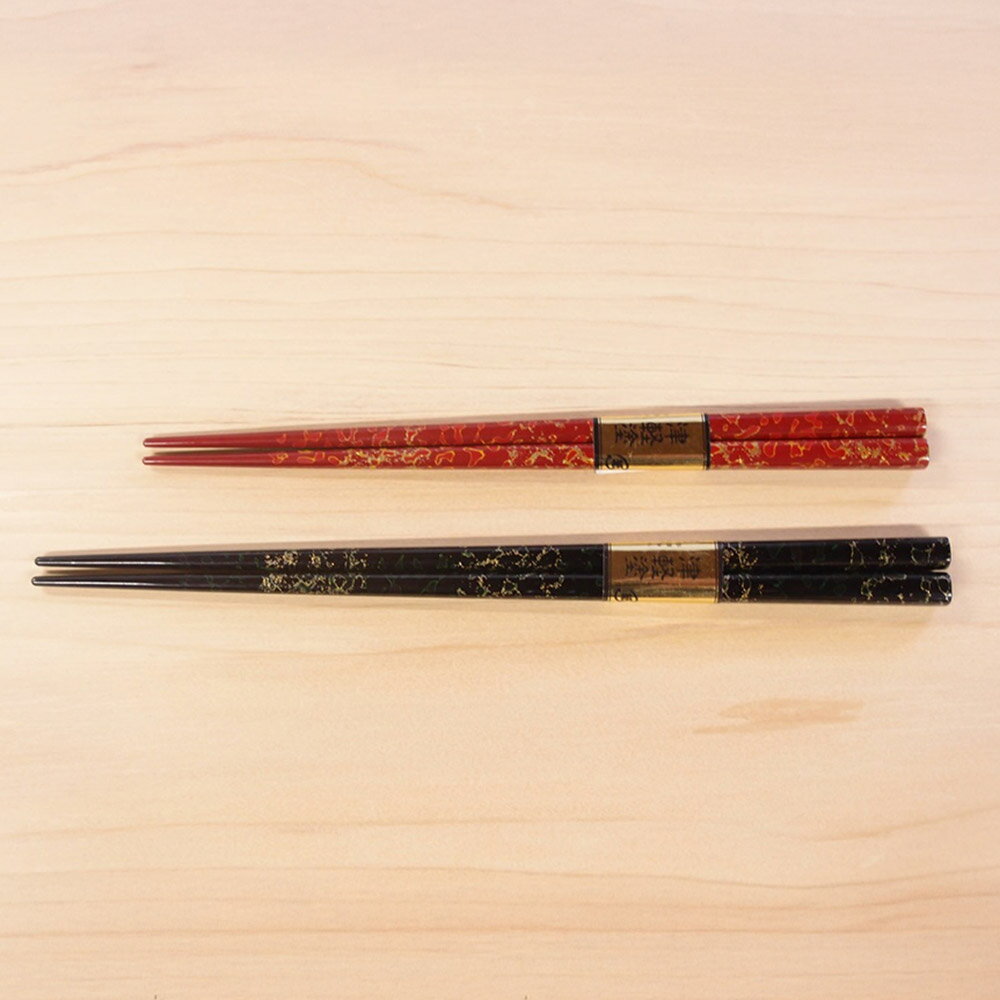 - 【ふるさと納税】津軽塗 夫婦箸 唐塗 黒(大)・赤々(中) [うるし塗り お箸 カトラリー つがるぬり つがる塗り はし 漆器 食器 青森 津軽 津軽塗 箸 和食器]