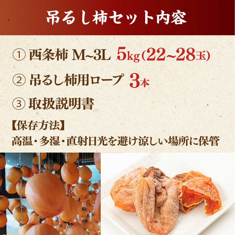 - 【ふるさと納税】【先行予約】【8個限定】【優品】柿 松江市産西条柿自宅でできる「つるし柿セット」 5kg 島根県松江市/マルカミ農縁株式会社 [ALCM009] | 干柿 干し柿 柿 カキ かき 秋 フルーツ 果物 スイーツ ドライフルーツ 高糖度 高級柿 ギフト 贈答 人気 くだもの