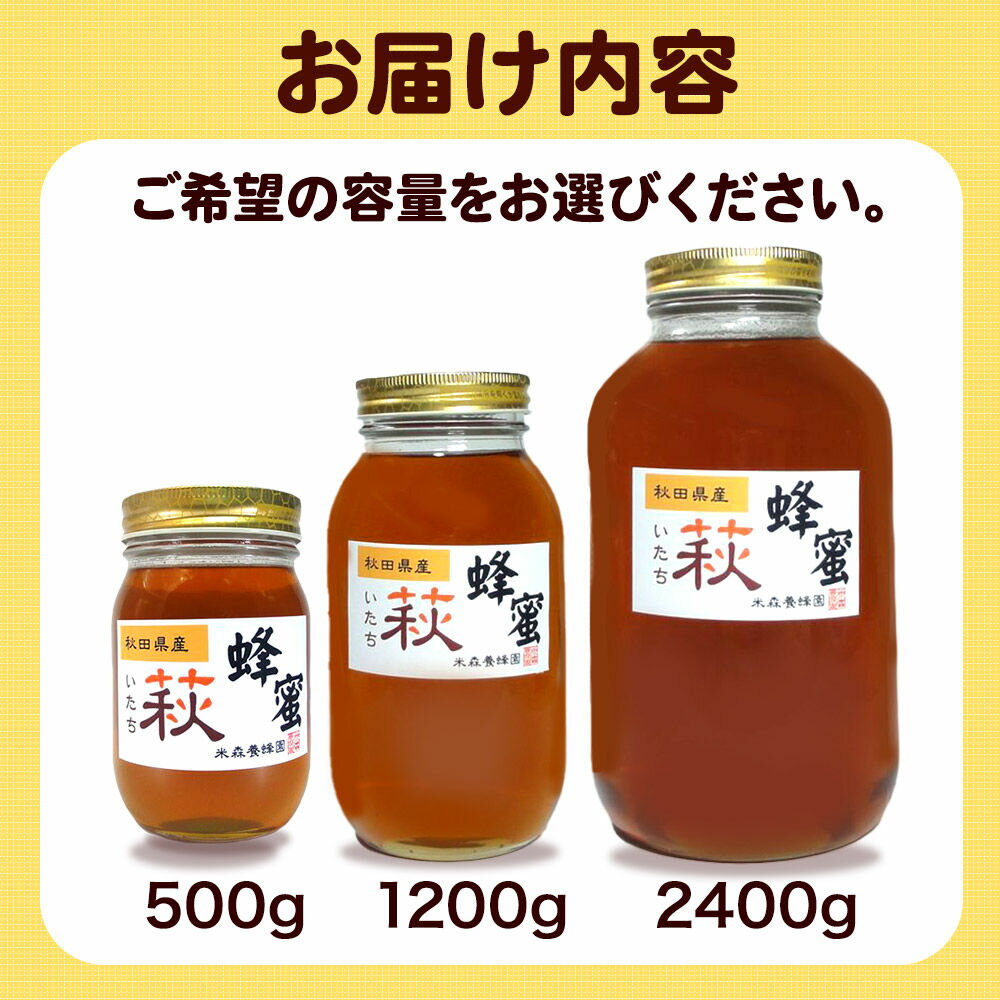 【ふるさと納税】はちみつ いたち萩蜂蜜 国産 選べる容量 500g 1200g 2400g 秋田県産100% 秋田白神の天然蜂蜜 米森養蜂園