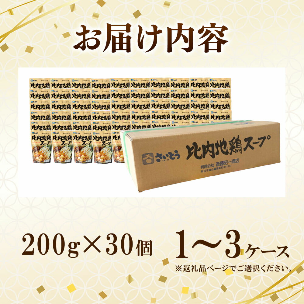 【ふるさと納税】比内地鶏スープ A200(200g×30個/1ケース)【選べる 1ケース/2ケース/3ケース】 秋田県秋田市 斎藤昭一商店 [きりたんぽ 比内地鶏 鍋 秋田市 さいとう 斎藤昭一商店]
