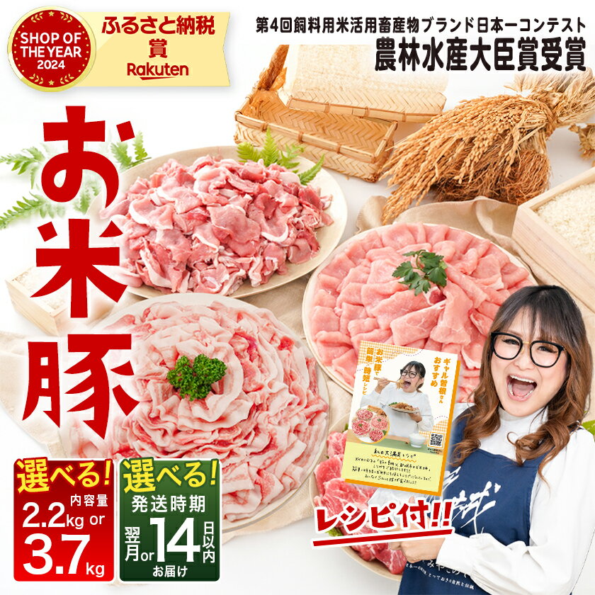 お米豚3.7kgセット - 豚肉 豚ロース/豚こま切れ(各300g×4) 豚バラ肉(300g×3) 豚肩ロース(200g×2) 計3.7キロ こだわり飼育/ブランド豚肉 小分け スライス肉 冷凍 ブランドポーク 銘柄豚 送料無料 MJ-3113【宮崎県都城市はふるさと納税二年連続日本一!!】