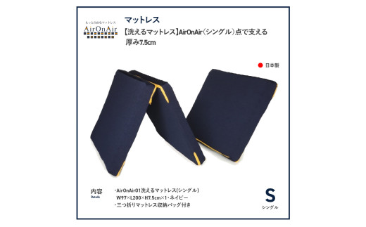 - 【洗えるマットレス】AirOnAir(シングル)点で支える 厚み7.5cm シングルマット 寝具 シングル マットレス 布団 AirOnAir 洗える 山梨 富士吉田
