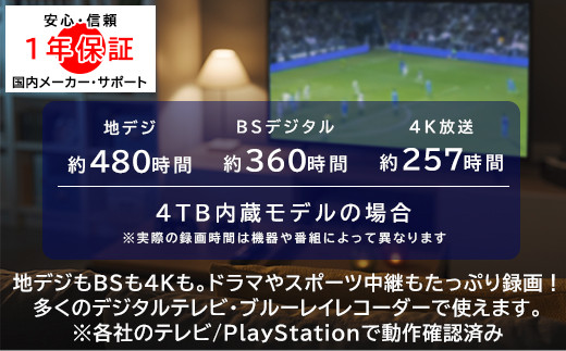 - 【083-01】ロジテック HDD 4TB USB3.1(Gen1) / USB3.0 国産 TV録画 省エネ静音 外付け ハードディスク テレビ 3.5インチ ホワイト 4K録画 PS4/PS4 Pro対応【LHD-ENA040U3WSH】