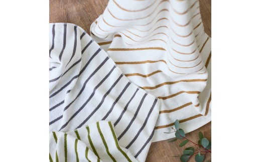 - 【グリーン】フェイスタオル5枚組 しまふわ