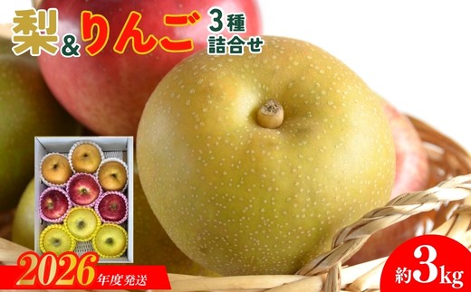 No.3021 なし&りんご詰合せ 3種 約3kg 【2026年発送】
