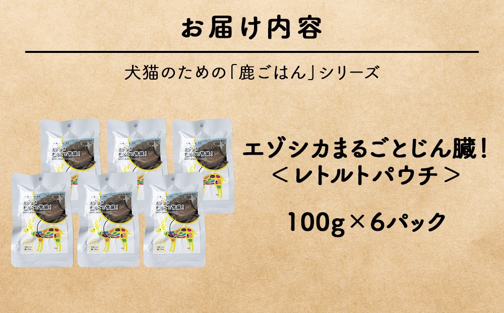 - まるごとじん臓 6パック 【鹿ごはんまるごとシリーズ】エゾシカ エゾ鹿 鹿肉 ペットフード 犬のおやつ 犬のごはん 無添加 狩人の匠