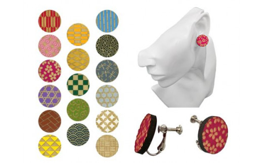 - 木製和柄イヤリング (スタッド) 丸 (1組)【fc-ZG052】【天法株式会社】