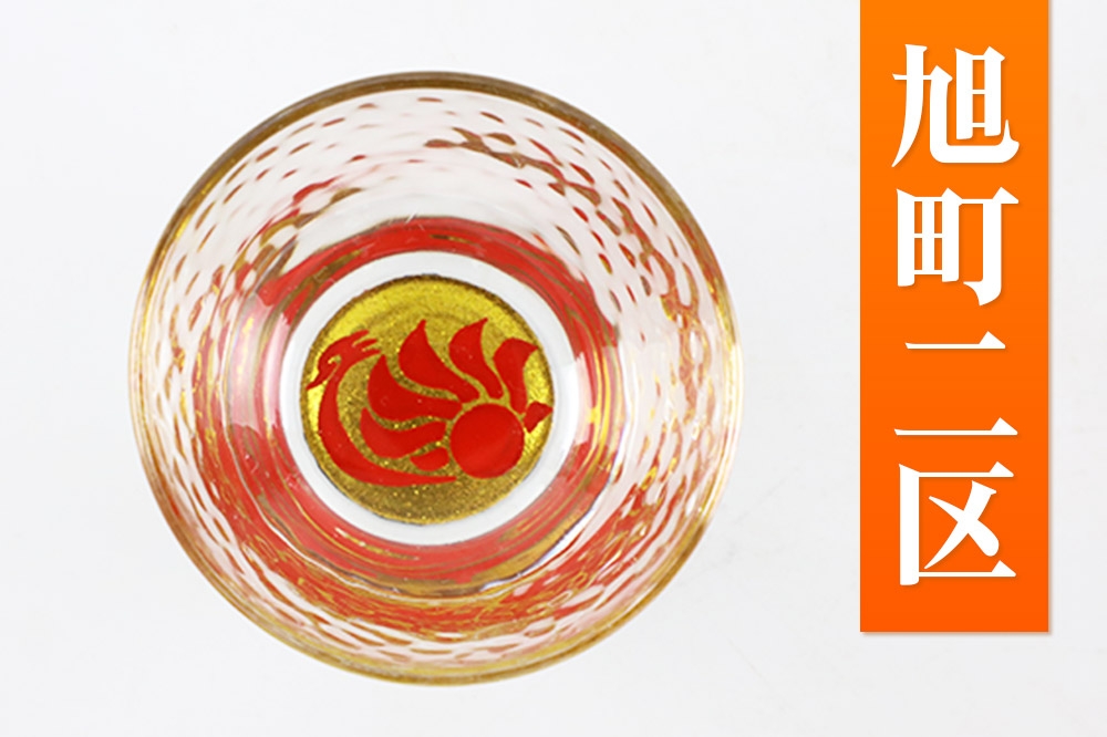 川連蒔絵ガラス 土崎港曳山まつり町紋ぐい呑(杉箱入り)【旭町二区】 [ぐい呑 ぐい呑み ぐいのみ ぐい飲み 酒器 ガラス]