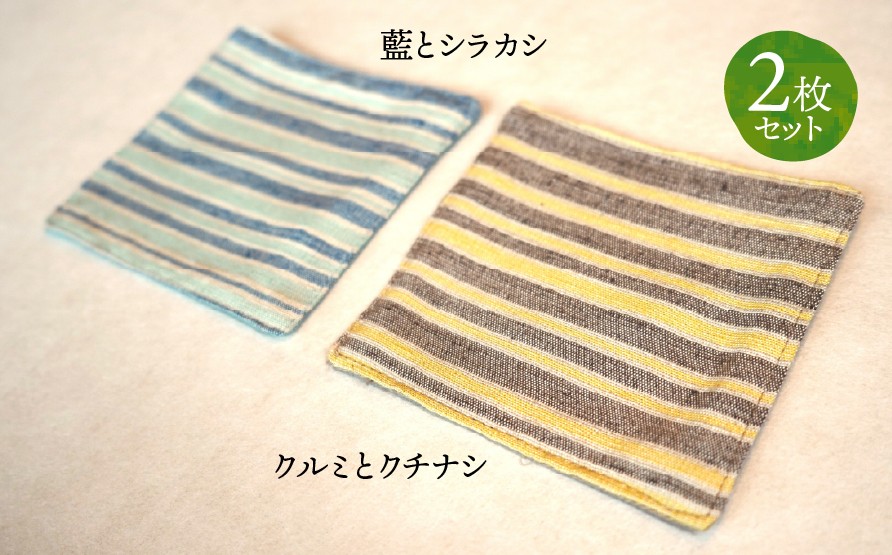 【草木染】紬織り コースター f (青色:藍とシラカシ)(黄色:クルミとクチナシ) 2枚セット|伝統 工芸 手織り 天然染料 小物 雑貨 丁寧な暮らし ティータイム 一点もの ハンドメイド サステナブル ギフト 贈り物 お祝い 土曜日の月