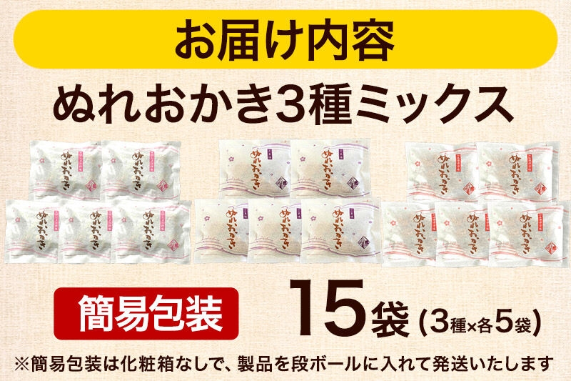 - ぬれおかき 三種ミックス 15袋(3種×各5袋)甘口醤油味 胡麻味 七味唐辛子味 簡易包装 秋田いなふく米菓 [おかき せんべい 簡易包装 秋田 土産 ぬれおかき]