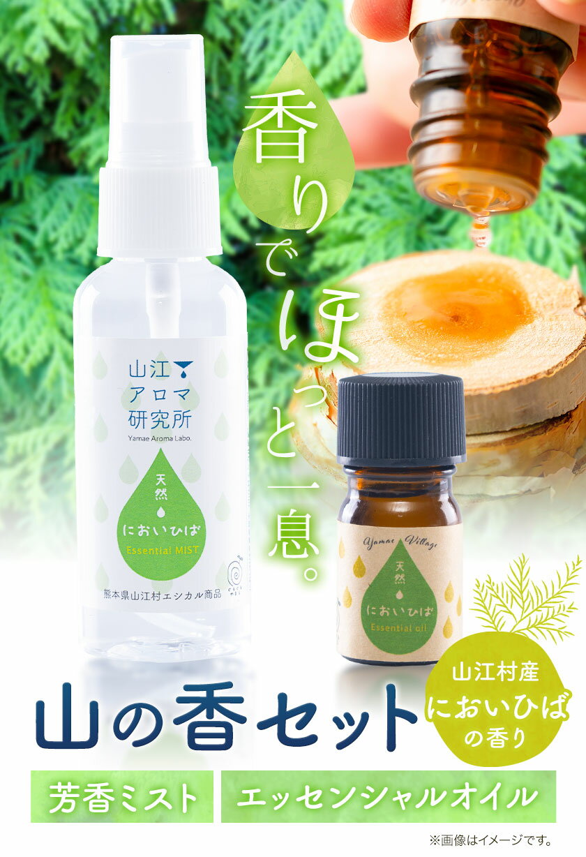 - 【ふるさと納税】アロマ 山の香セット においひば の香り 芳香ミスト 50ml エッセンシャルオイル 5ml 山江アロマ研究所《30日以内に出荷予定(土日祝除く)》熊本県 球磨郡 山江村 送料無料 ウッディ 山江村産 ニオイヒバ 100% 天然素材 リラックス 睡眠 入浴 インテリア