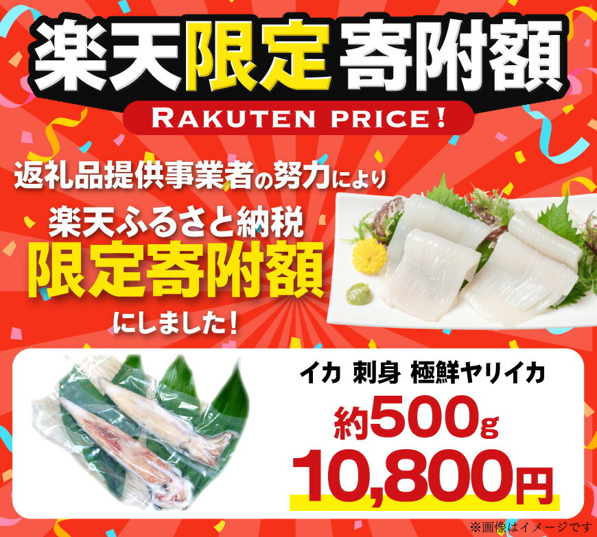 - 【ふるさと納税】【楽天限定寄附額 約500g 10,800円】 イカ 刺身 極鮮ヤリイカ 選べる量 500g 1kg [海隆丸 長崎県 平戸市 hr42bgy400118-o] ヤリイカ 新鮮 海鮮 魚介 瞬間冷凍 冷凍 コリコリ 直送 冷凍 個包装 真空パック 1キロ