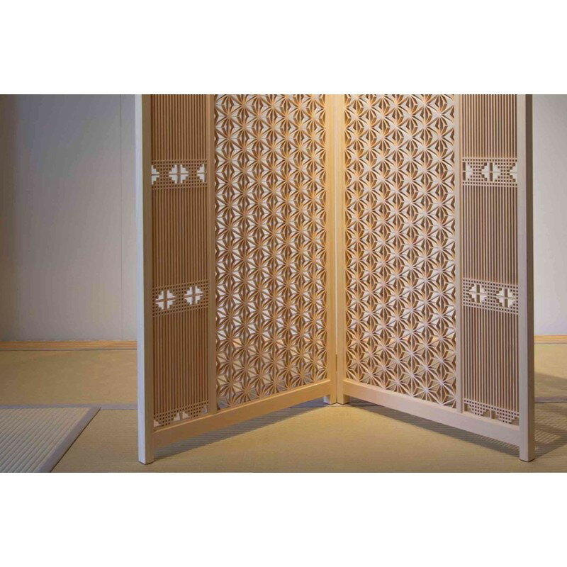 【ふるさと納税】空間を彩る組子屏風麻の葉(2連) 屏風 伝統技術 職人の技 贈り物 贈答 【031_1987】