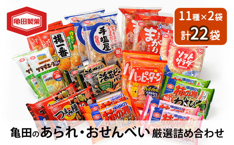 - 【ふるさと納税】せんべい 詰め合わせ 亀田のあられ おせんべい 厳選 詰合 Aセット 22袋 11種×2袋 亀田製菓 セット 煎餅 お菓子 菓子 ハッピーターン サラダホープ ソフトサラダ 柿の種 わさび まがりせんべい のりピー 揚一番 つまみ種 手塩屋