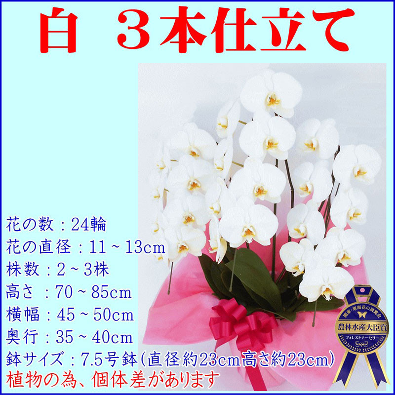 胡蝶蘭 白 3本仕立て 24輪 ※お届け不可地域あり