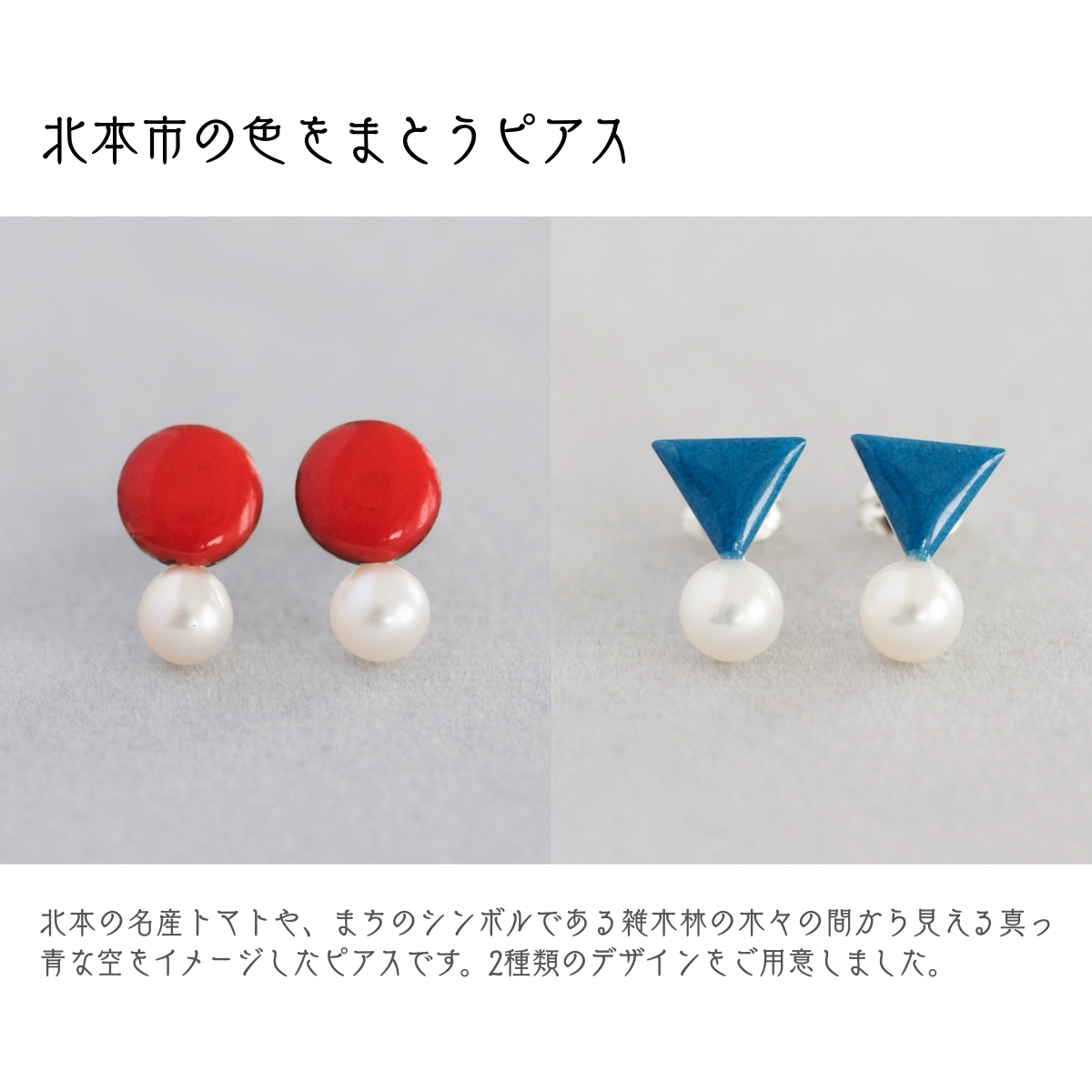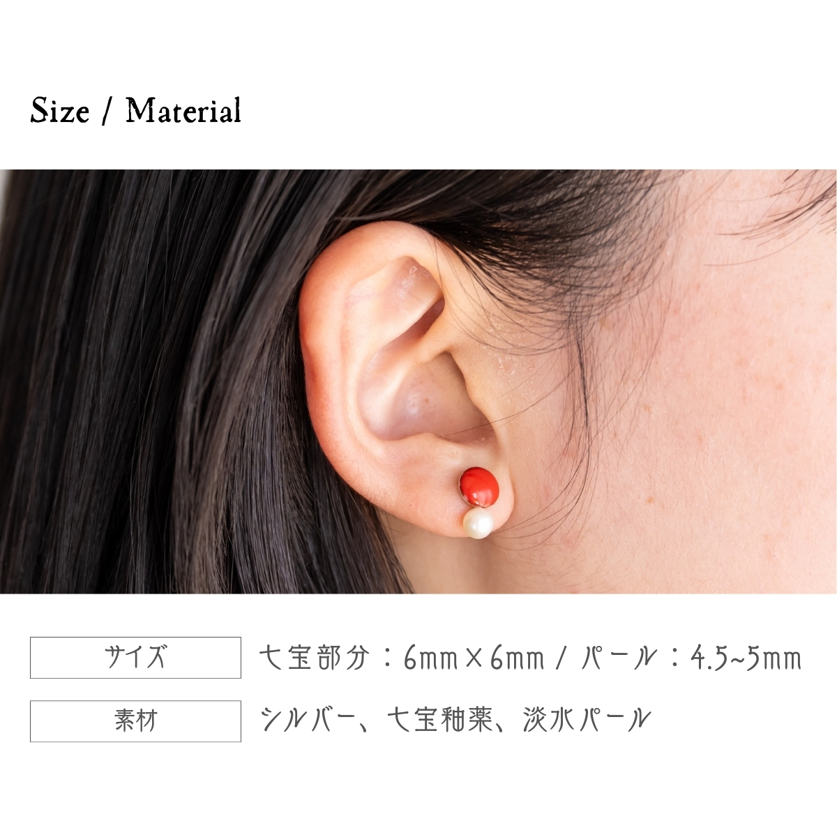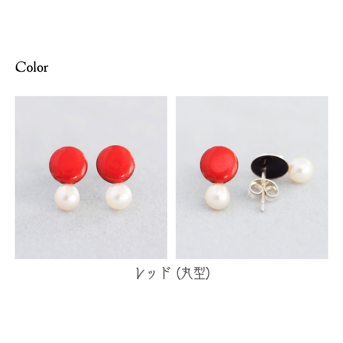 - ピアス パール付き シルバーピアス レッド 丸型 七宝 Kenichi Kondo