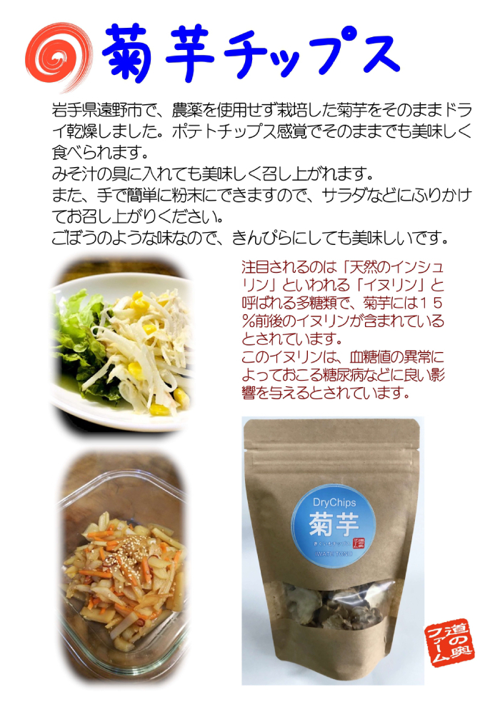 菊芋 チップス 5袋 セット きくいも イヌリン 岩手県 遠野市 産 道の奥ファーム