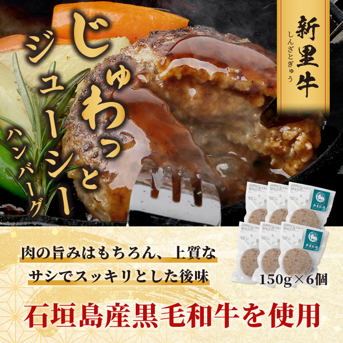 - 石垣島産 黒毛和牛 新里牛 ハンバーグ(150g×6個)【 牛肉 肉 手ごね 牛100%ハンバーグ 焼肉 和牛 バーベキュー BBQ 石垣 石垣島 沖縄 】SZ-7