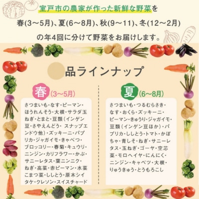 - 季節のお野菜詰め合わせセット 定期便 春夏秋冬年4回 旬のおまかせ 詰め合わせ 産地直送 季節の新鮮 野菜 定期便 果物 セット じゃがいも きゅうり トマト とうもろこし アスパラガス 玉ねぎ 蓮根 等 ふるさと納税 高知県 室戸市
