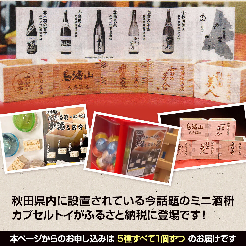 - カプセルトイ 5種コンプリートセット 秋田県 由利本荘・にかほのお酒を紹介し枡 [ミニ酒枡 カプセルトイ 観賞用枡 小物入れ インテリア レーザー彫刻 酒蔵ロゴ タカハシ印店]