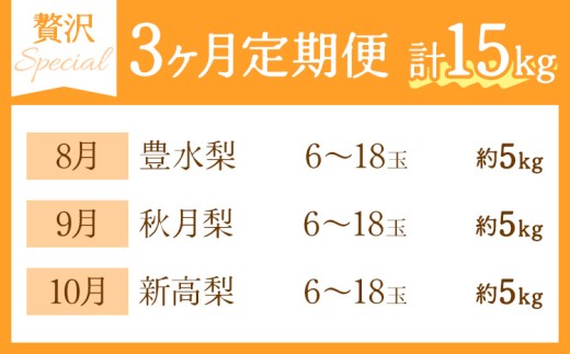 - 【3ヶ月定期便】梨 定期便 秀品 3ヶ月連続 梨の定期便 スペシャル 計15kg 日本フルーツ株式会社《8月上旬-10月末頃出荷》熊本県 長洲町 なし ナシ 豊水梨 秋月梨 新高梨 果物 フルーツ