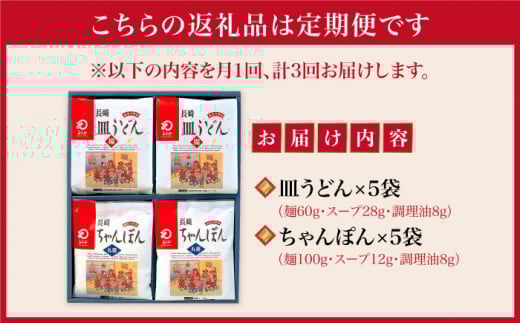 【全3回定期便】 長崎 ちゃんぽん ・皿うどん 各5人前 《みろく屋》 [DBD024] 簡単調理 チャンポン レトルト 野菜 常温 保存 惣菜 おかず 簡単 時短 常温