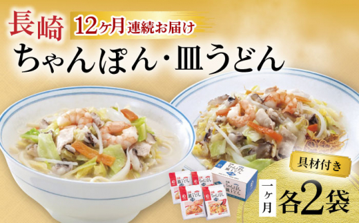 【12回定期便】具材付き!長崎ちゃんぽん・皿うどん揚麺 各2人前 / ちゃんぽん 皿うどん 海鮮 国産 麺 みろくや / 大村市 / みろく屋[ACBK032]