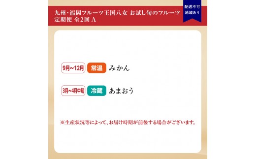- 九州・福岡フルーツ王国八女 お試し旬のフルーツ定期便【全2回】A|<配送不可:北海道・沖縄・離島> フルーツ 定期便 あまおう みかん いちご 蜜柑 オレンジ 果物 福岡県 八女市