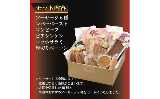 - ソーセージ ベーコン 計 12点 詰め合わせ 金賞 IFFA 本場 ドイツ 粗びき プレーン 厚切り サラミ レバー ペースト 国産 豚肉 豚 能登豚 ソーセージセット そーせーじ 贈り物 贈答 贈答用 ギフト ブランド 冷蔵 時間指定 包装 ソーセージセットC [B033]