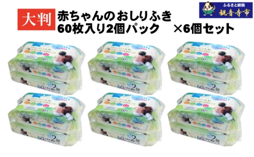 - 大判 赤ちゃんのおしりふき 60枚2個パックセット×6個セット (720枚)ノンアルコール・パラベンフリー・保湿成分配合<KA-208F>