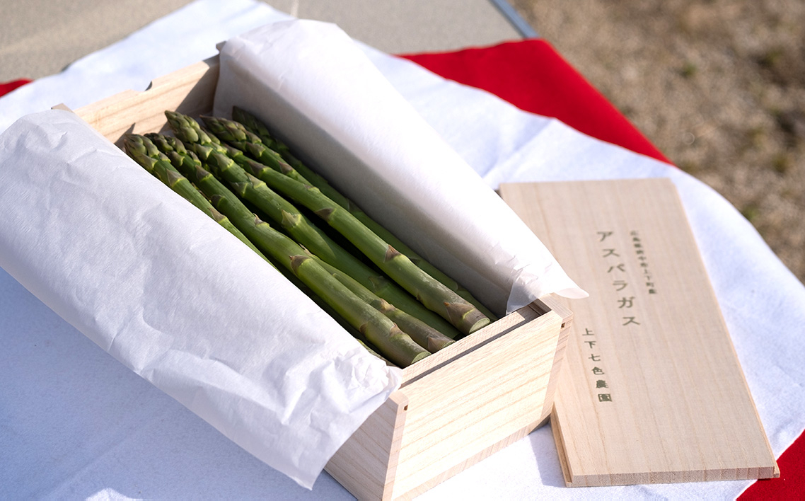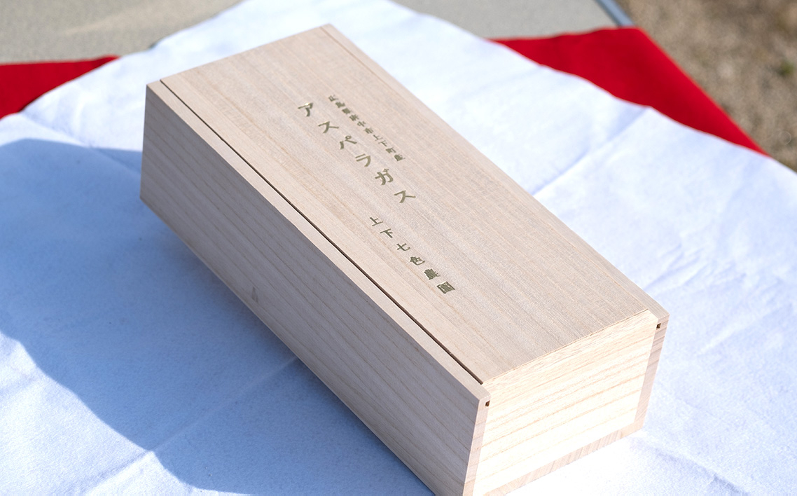 上下七色農園贈答用アスパラガス 2Lサイズ 桐箱 / 野菜 新鮮 柔らか ジューシー お中元 贈り物 ご進物 広島県 特産品 No.1098