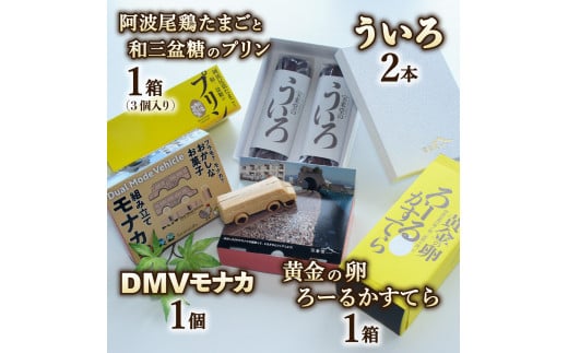 - 【DMV運行記念】和洋菓子4種よくばりセット 和洋菓子 4種 詰め合わせ モナカ 最中 プリン ういろ ロールカステラ 菓子 和菓子 洋菓子 セット 阿波尾鶏 和三盆糖