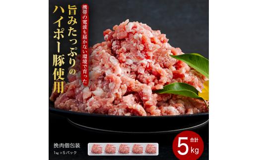 豚肉 阿武町産 豚挽肉 1kg×5パック 小分けセット | 携帯の電波も届かない環境で育った旨みたっぷりのハイポー豚 ひき肉 挽肉 豚 肉 お肉 ※配送不可:離島