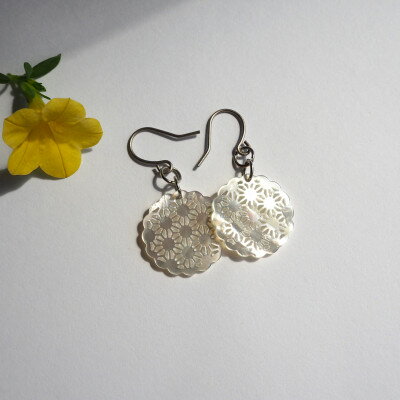 - 【ふるさと納税】白蝶貝のレース彫刻「麻」ピアス【1237885】
