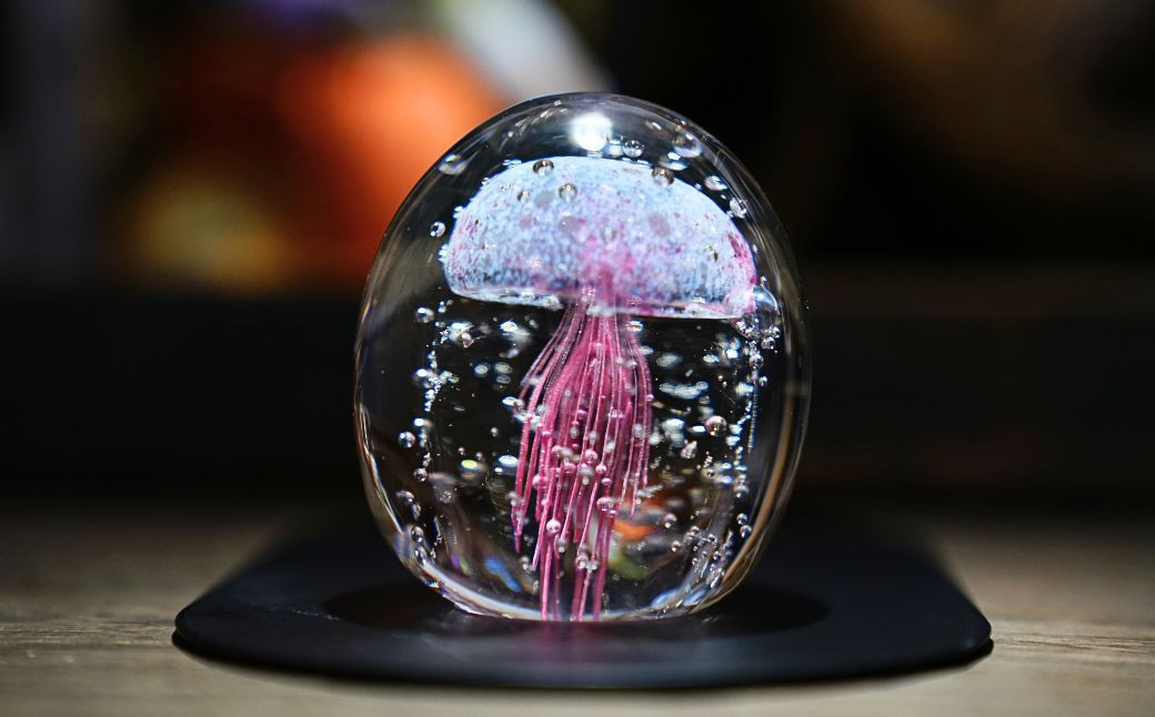 - くらげオーナメント<ピンク>ガラス細工 飾り 新潟県 弥彦村_ハンドメイド クリア 透明感 おしゃれ 綺麗 ガラス製品 置物 インテリア【1440945】