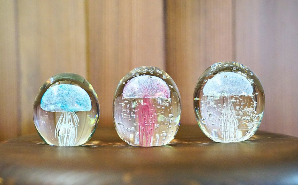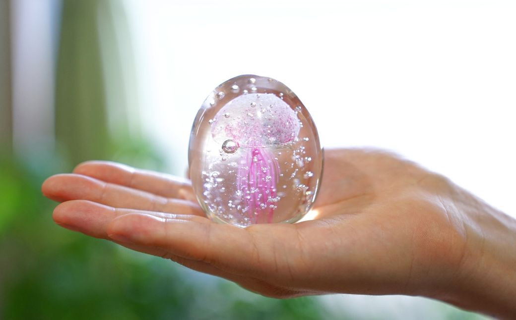 くらげオーナメント<ピンク>ガラス細工 飾り 新潟県 弥彦村_ハンドメイド クリア 透明感 おしゃれ 綺麗 ガラス製品 置物 インテリア【1440945】