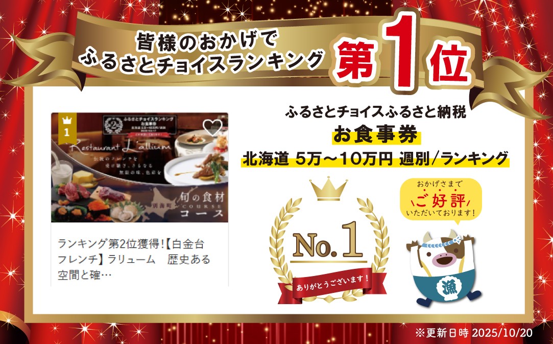 御礼!ランキング第1位獲得!【白金台 フレンチ】 ラリューム 歴史ある空間と確かな技「別海町SPECIALコース」お食事券1名様【CC0000053】(食事券 お食事券 東京 フレンチ フランス料理 フルコース コース料理 ディナー ランチ ふるさと納税 仕組み キャンペーン 限度額 計算 ランキング やり方 シミュレーション チョイス チョイスマイル )
